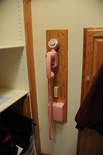 ![]() | Hat Closet Western Electric Pink 211 The small tan box holds a small switch to allow me to use one of 2 phone lines This is one of the very few rotary phones in my collection. I saw it on eBay and just couldn't resist. I spent a lot of time trying to decide where to display it without putting it out where it wouldn't fit. The closet works out in a utilitarian way being next to the alarm control panel. Large View |