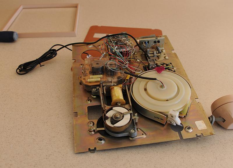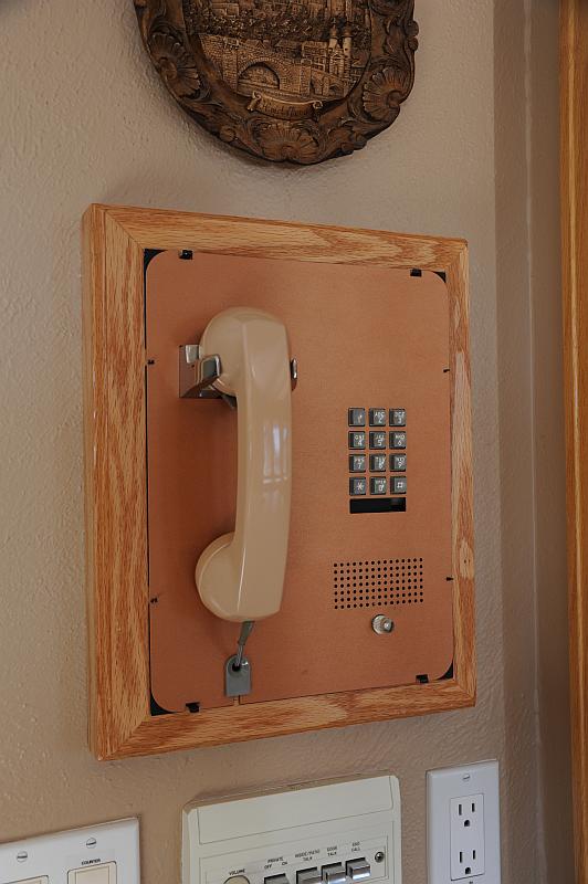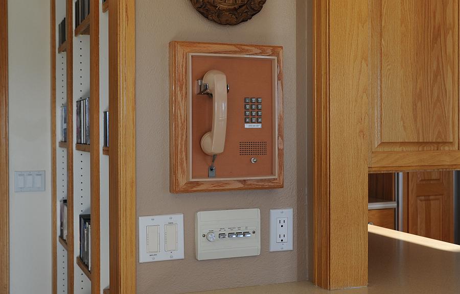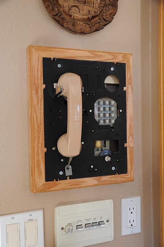 I wanted to display this phone in a prominent location but didn't want to cut a hole in the wall which would have been difficult to repair if we move or I change my mind. So we had our handyman construct this oak frame which sticks out from the wall giving enough depth for the phone's components.