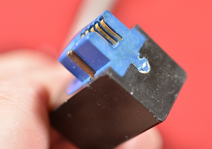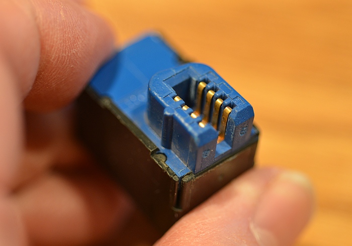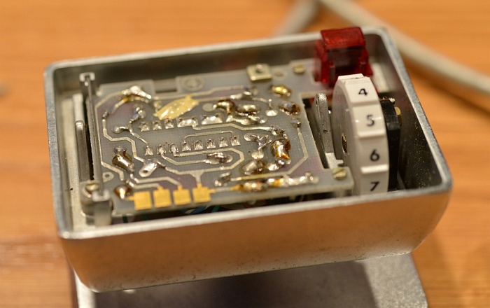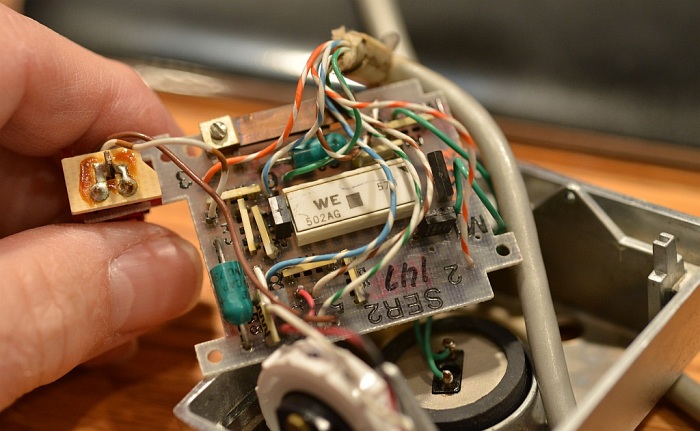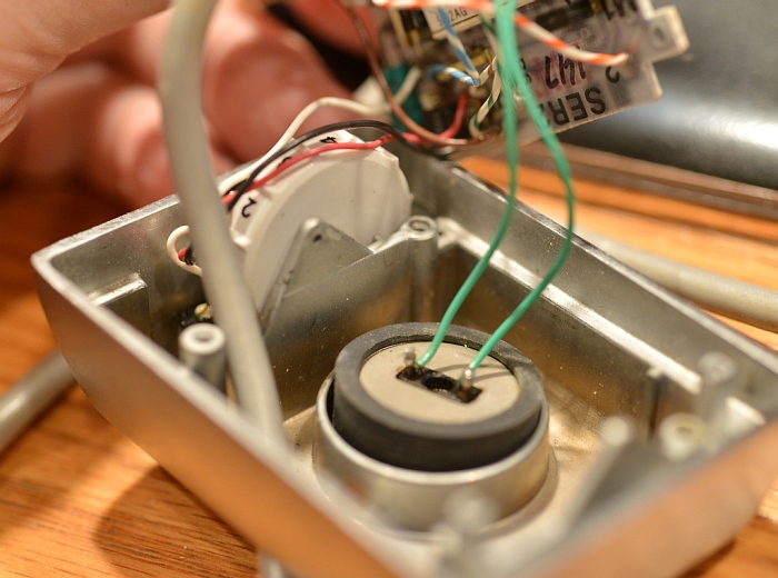 This pin doesn't seem to be connected to anything inside the plug. On closer scrutiny, it appears that they used a standard 50 contact Amphenol connector and cut off all but the 10 contacts on one end. I am now speculating this is an early production model connector. Since the connector wouldn't have had the alignment key molded in, they had to jury rig something to form the alignment key, thus the brass pin. This may have been one of the earliest plugs made before the molded key connectors were developed. 6