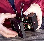 Drill 2 holes about ¼ to ½ apart (or just one if using the two color LED) of appropriate size in the speaker case to mount the LEDs in. Locate these holes where the LEDs can be seen while the user is holding the unit. Make sure the location you chose, will allow components to fit back in the case without the LEDs or wires getting in the way.