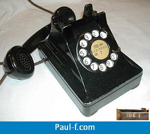 Much more commonly we saw many Western Electric #302 sets as seen on the left. I don't remember seeing any of the early die-cast zinc models. Most had the older bakelite handsets, and the majority had dials. The #300 sets came from all areas of the C&P system. These sets were broken down and the materials were recycled or sent to the landfill.